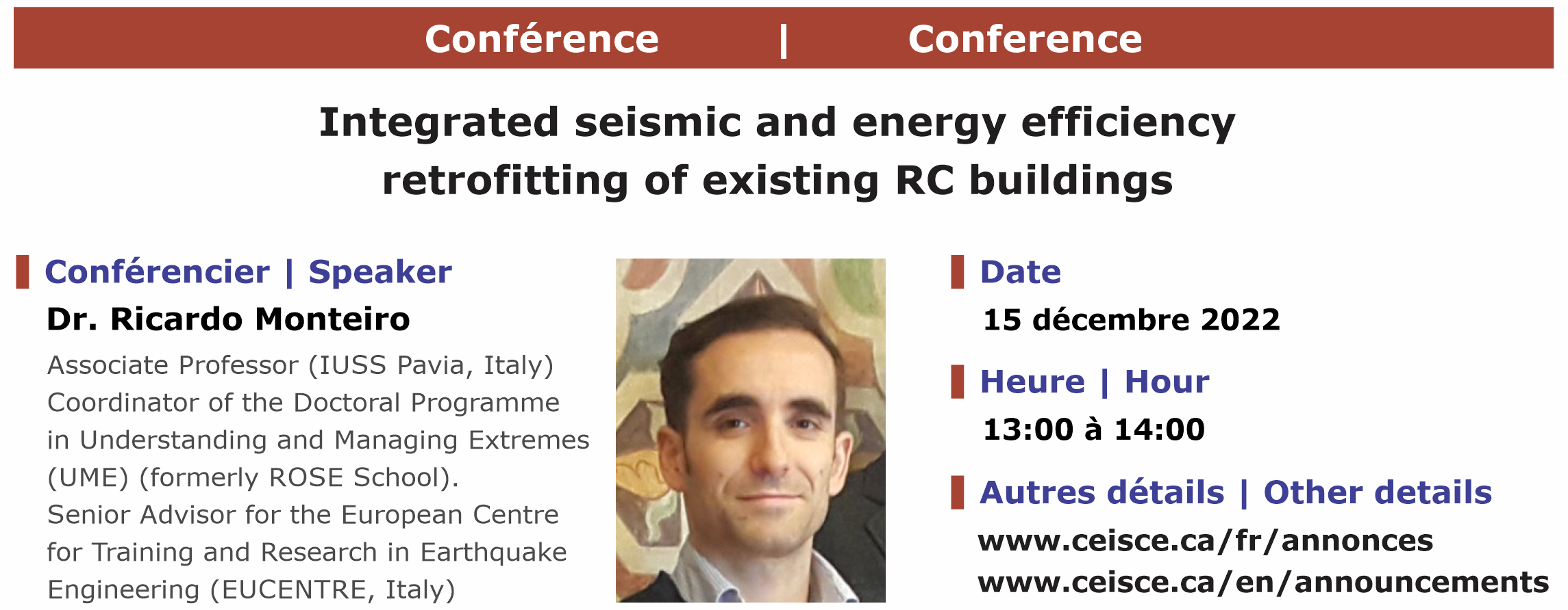 Le Centre d'études interuniversitaire des structures sous charges extrêmes (CEISCE) est un regroupement stratégique de recherche dédié au comportement sécuritaire des structures de génie civil face aux effets extrêmes générés par les aléas naturels, les changements climatiques et les activités humaines. Pour accomplir sa mission, le CEISCE met en commun des ressources humaines hautement qualifiées et une infrastructure technique à la fine pointe de la technologie. En particulier, le centre gère et opère le plus grand réseau de laboratoires de structures au pays, réputé mondialement parmi les plus polyvalents et les plus performants.